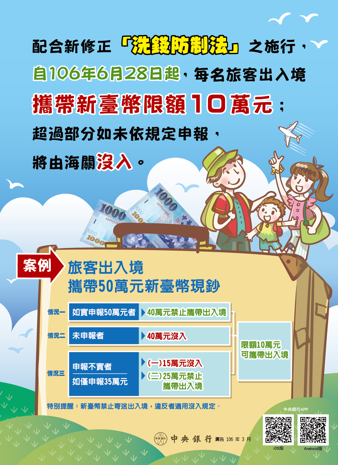 - 「洗錢防制法新制有關攜帶或寄送新臺幣出入境問答」PDF